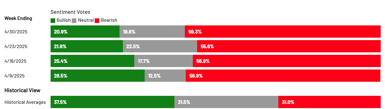 Der CNN Fear & Greed Index bleibt weiterhin im Bereich der Angst (aktuell bei 40), nachdem er nur kurzzeitig in den neutralen Bereich vorgedrungen war. Auch die aktuelle Umfrage der AAII (American Association of Individual Investors) bestätigt die angespannte Stimmung an den US-Aktienmärkten: Fast 60 Prozent der befragten Mitglieder erwarten in den kommenden sechs Monaten sinkende Kurse, während nur 20 Prozent eine optimistische Einschätzung abgeben.