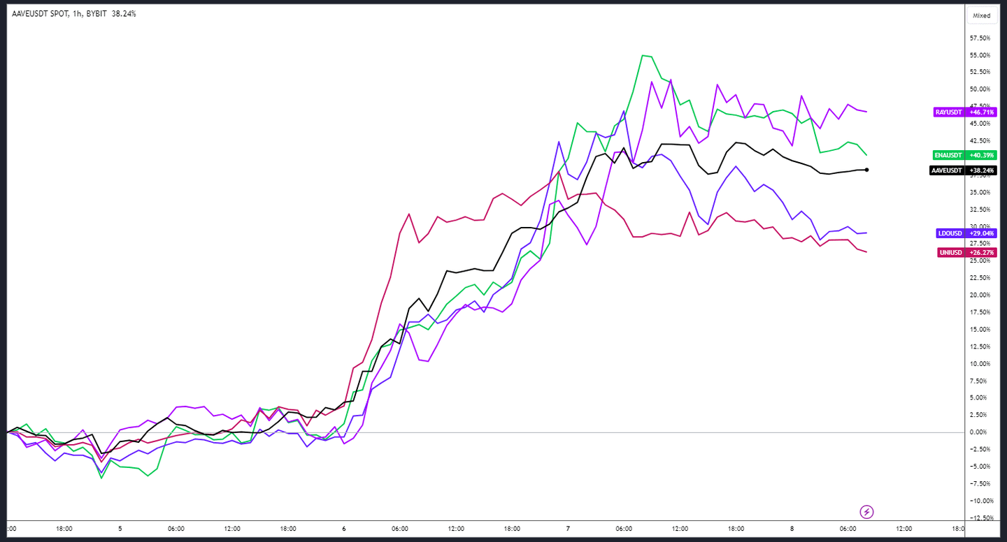 Während die meisten Kryptowährungen am Mittwoch nach Trumps Sieg im Wert stiegen, stahlen DeFi-Coins allen die Show. Protokolle wie Uniswap, Aave, Raydium, Lido und Ethena sind diese Woche zwischen 20 und 50 Prozent gestiegen, da Investoren aufgrund der erwarteten Deregulierung und eines kryptofreundlicheren Ansatzes der US-Regierung ein „goldenes Zeitalter“ für DeFi mit Trump als Präsident erwarten. Da Donald Trump versprochen hat, den derzeitigen SEC-Vorsitzenden Gary Gensler zu entlassen, ist der Optimismus gestiegen, dass ein kryptofreundlicherer Kandidat die lang diskutierten und erwarteten Gebührensätze endlich freigeben und so neuen Wert für Inhaber von Governance-Token schaffen könnte.