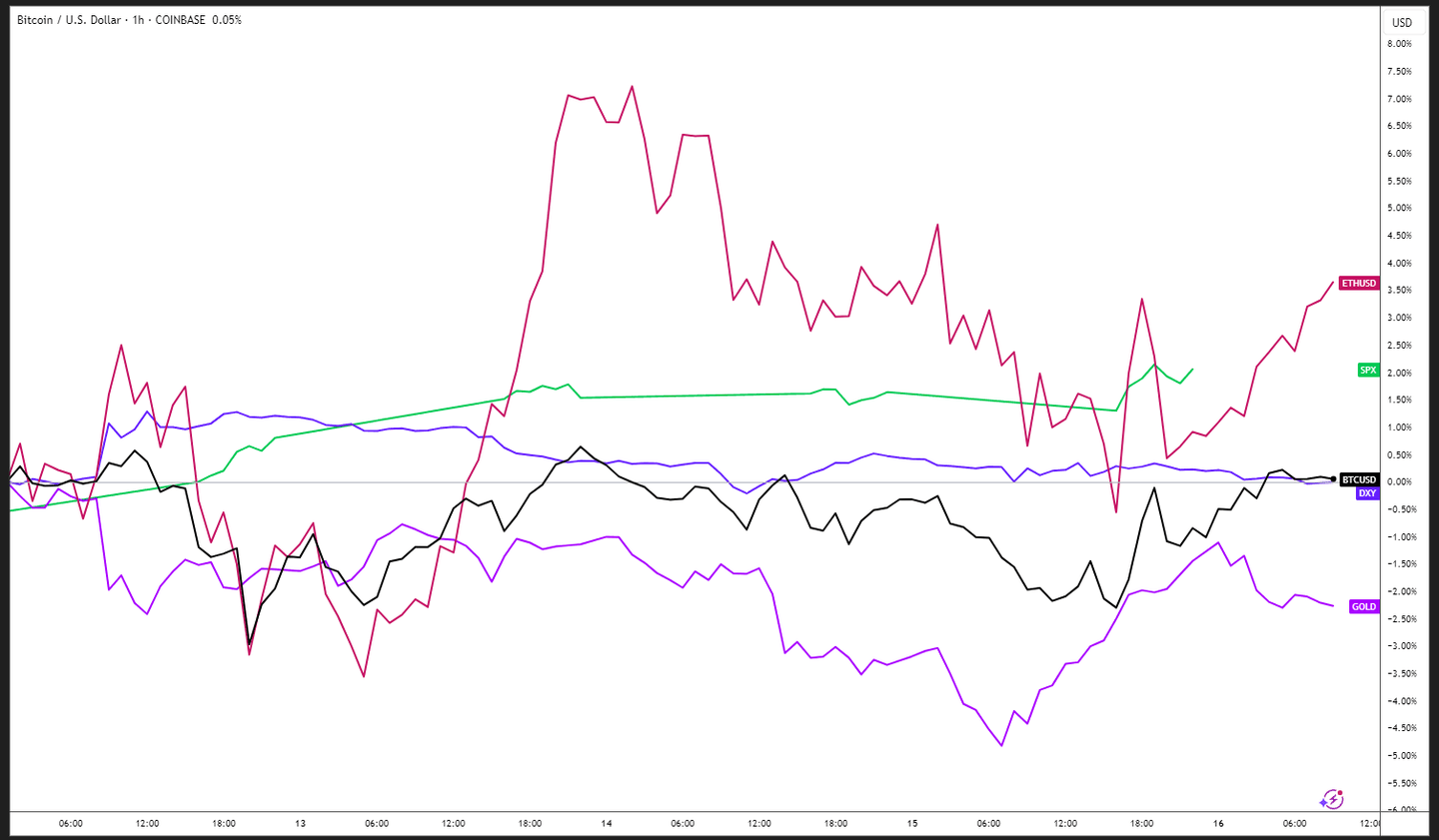 Bemerkenswert ist, dass der S&P 500 seit Handelsschluss am vergangenen Freitag um über 4,5 Prozent zugelegt hat, während Bitcoin im gleichen Zeitraum lediglich rund 1 Prozent gestiegen ist. Gold verlor im Wochenverlauf rund 3,2 Prozent.