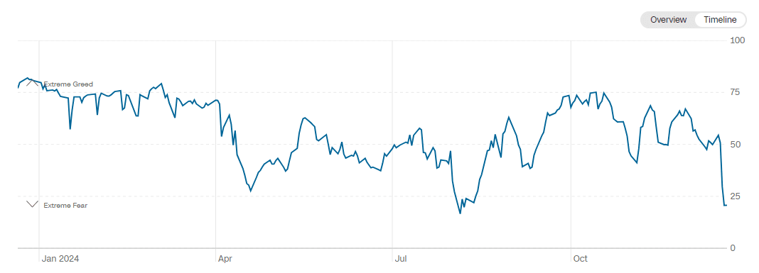Der Aktienmarkt hingegen befindet sich bereits im Bereich extremer Angst, wie der CNN-Index zeigt. Das letzte Mal, dass der Index so niedrig war, war am 5. August. Danach fand der Aktienmarkt seinen Boden und setzte seinen Aufwärtstrend fort.