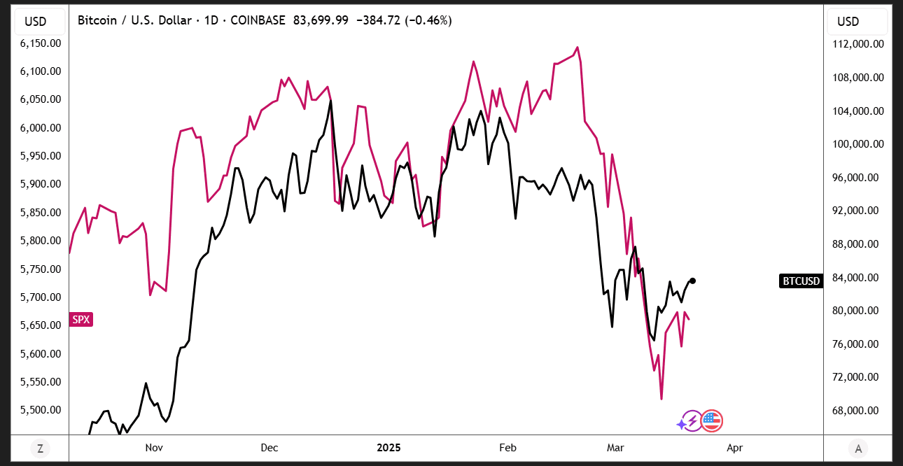 Wie bereits erwähnt, identifizieren wir uns derzeit als «Makro-Trader», da den Kryptomärkten ein klares Narrativ fehlt und die Korrelationen zu US-Aktien zugenommen haben. Nachdem die Zinsentscheidung in den USA nun gefallen ist und es keine überraschenden negativen Veränderungen im Ausblick der Fed auf Zinssenkungen in diesem Jahr gegeben hat, ist eine gewisse Unsicherheit beseitigt worden. Es bleibt abzuwarten, wie sich die ganze Saga um die «Trump'schen Zölle» in der kommenden Woche bis in den April hinein entwickeln wird – eine positive Entwicklung in dieser Hinsicht könnte die Marktstimmung umkehren und ein gewisses Aufwärtspotenzial für US-Aktien und Risikoanlagen im Allgemeinen bieten.