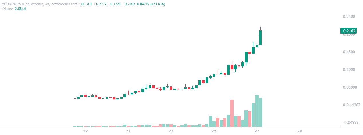Im Bereich des On-Chain-Handels hat ein unerwartetes Ereignis grosse Aufmerksamkeit erregt, obwohl Überraschungen in diesem Bereich keine Seltenheit sind. Haben Sie schon von Moo Deng gehört, dem Zwergflusspferdbaby, das in einem Zoo in Thailand lebt? Das zwei Monate alte Zwergflusspferdbaby hat sich in den letzten Wochen in den sozialen Medien viral verbreitet. Es überrascht nicht, dass einige On-Chain-Enthusiasten aus diesem Trend Kapital geschlagen haben, indem sie einen Moo Deng-Token auf den Markt gebracht haben. MOODENG, der auf Solana lanciert wurde, hat kürzlich eine Marktkapitalisierung von 200 Millionen US-Dollar überschritten und ist seit seiner Lancierung am 18. September um über 1.000 Prozent gestiegen. In der Tat spezielle Zeiten!
