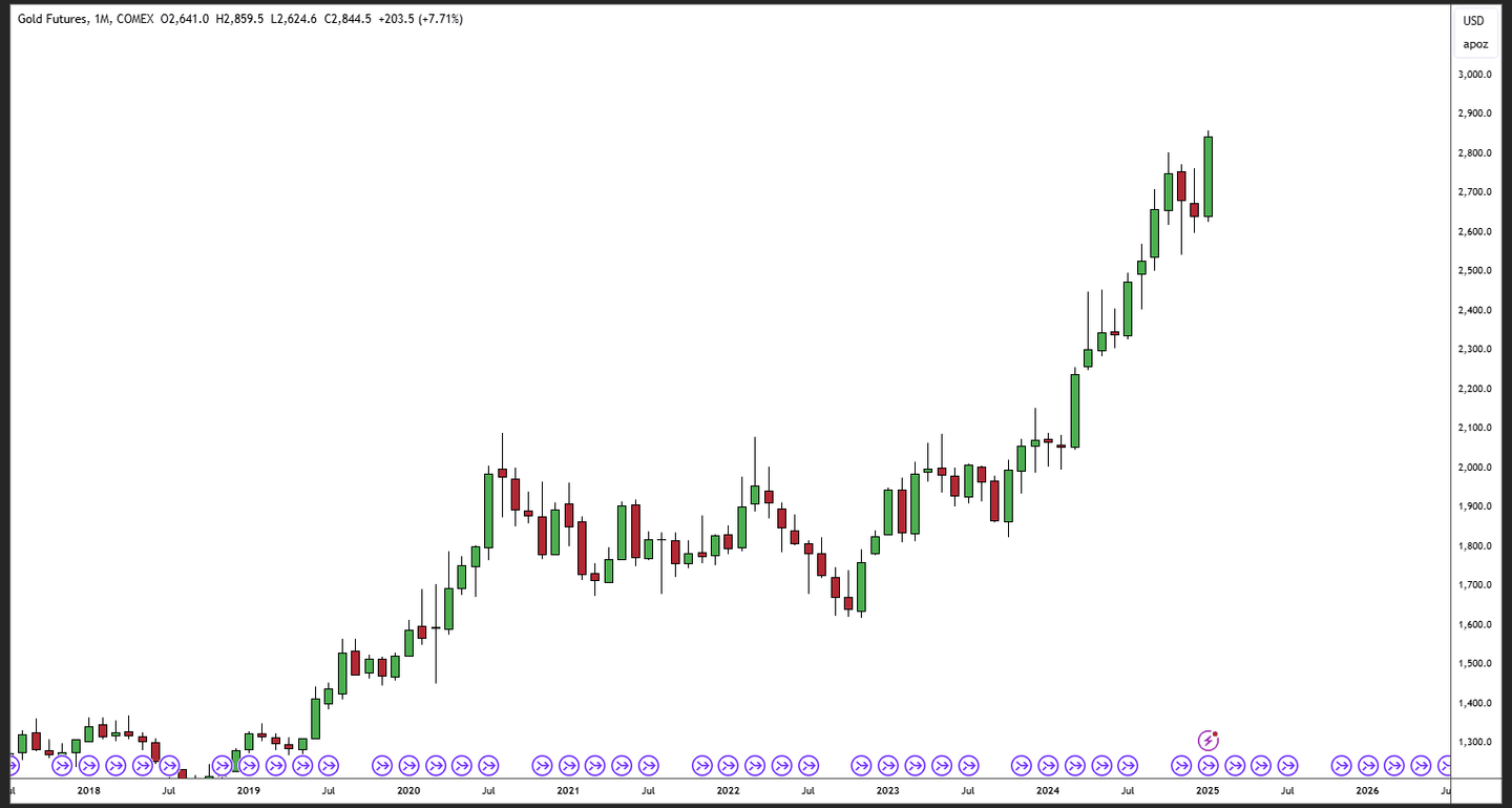 Der grosse Bruder von Bitcoin, Gold, hat diese Woche still und leise ein neues Allzeithoch erreicht und wurde zum ersten Mal in der Geschichte über 2'850 US-Dollar gehandelt. Gold-Futures sind jetzt fast 12 Prozent höher als ihre Tiefststände im November und haben allein seit Jahresbeginn 7,5 Prozent zugelegt.