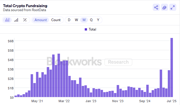 July was also a good month for crypto fundraising, as the amount of total crypto fundraising more than doubled month-over-month to more than $6 billion in July, up from $2.9 billion in June.