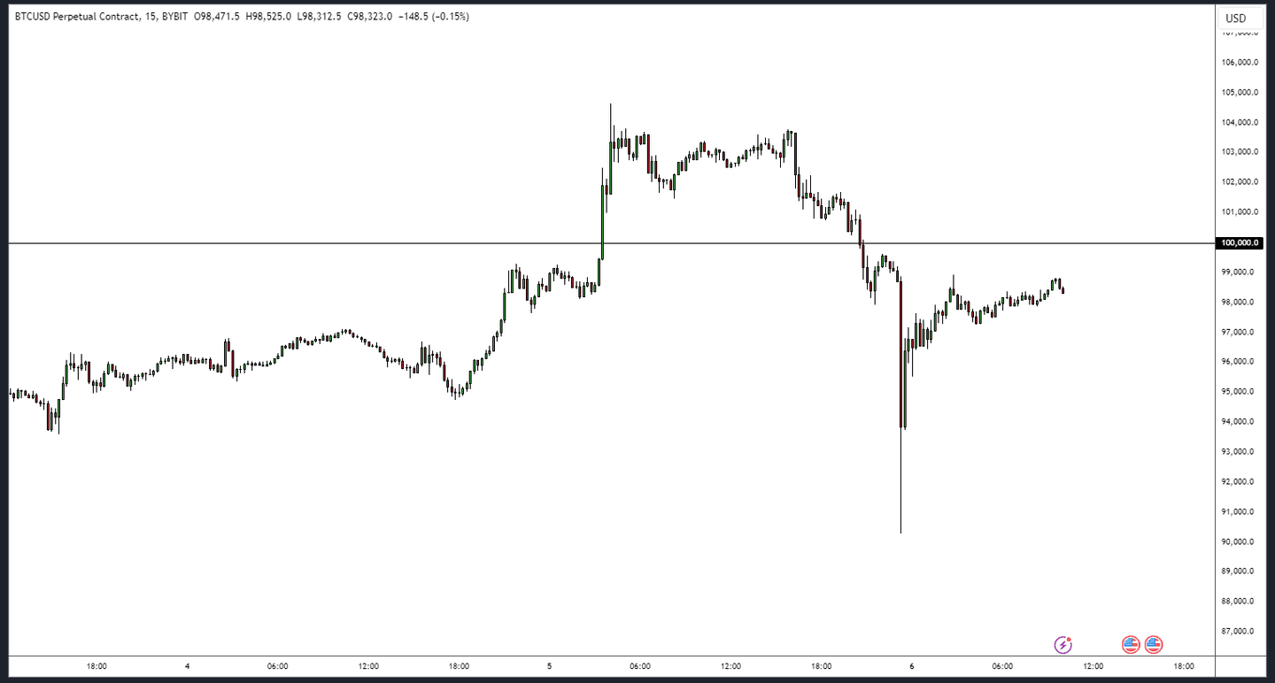 When looking at the Bitcoin chart, it doesn’t even look that spectacular – but it certainly was. Especially for a bitcoin whale on the OKX exchange, who was liquidated for roughly $20 million last night when Bitcoin dumped back below $100’000, bottoming out at $90’000 – a level we highlighted last week.