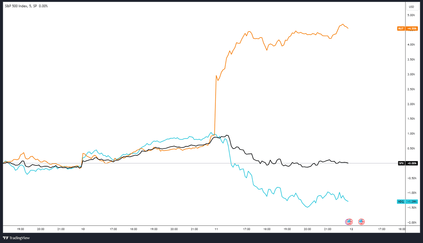 Now, you might wonder how the markets reacted to this positive news regarding U.S. inflation data. Probably not the way you expected: The Nasdaq ended sharply lower on Thursday, hit by losses in Nvidia, Apple and Tesla as investors rotated into smaller companies after softer-than-expected inflation data. The SPX also closed slightly in the negative, while the Russell 2000 closed up more than 3% on the day. The Russell 2000 has been lagging for quite a bit in 2024, but now market participants seem to think that upcoming rate cuts will make the lives of smaller companies easier in the coming months. This will be interesting to observe.