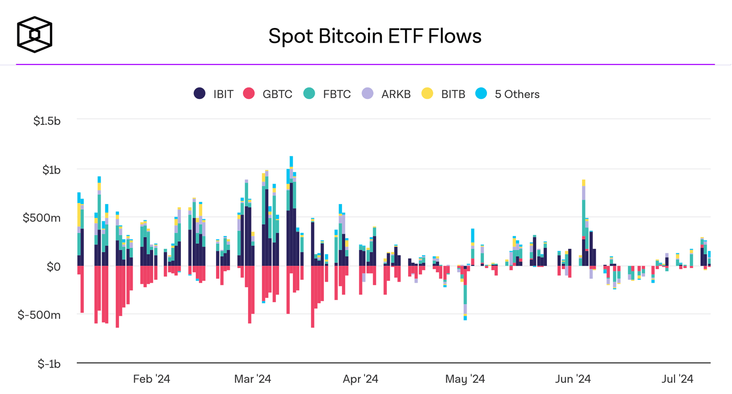 The crypto market has experienced some rough weeks with increased selling pressure from the German government and Mt. Gox accompanied by the lack of a narrative within the sphere of digital assets. Market participants are still waiting for the approval of the Ether spot ETFs, which might bring a new narrative and turn around for the market overall. Interestingly, we are starting to see some shift in news, with the announcement of Donald Trump as an official speaker at the Bitcoin Conference in Nashville or the Solana spot ETF filings in recent weeks. Some market participants are even happy about the selling and distribution of BTC from large entities like the German Government, Genesis, or Mt. Gox, because it might clear the way for a more sustainable price action afterward, with these issues out of the way.