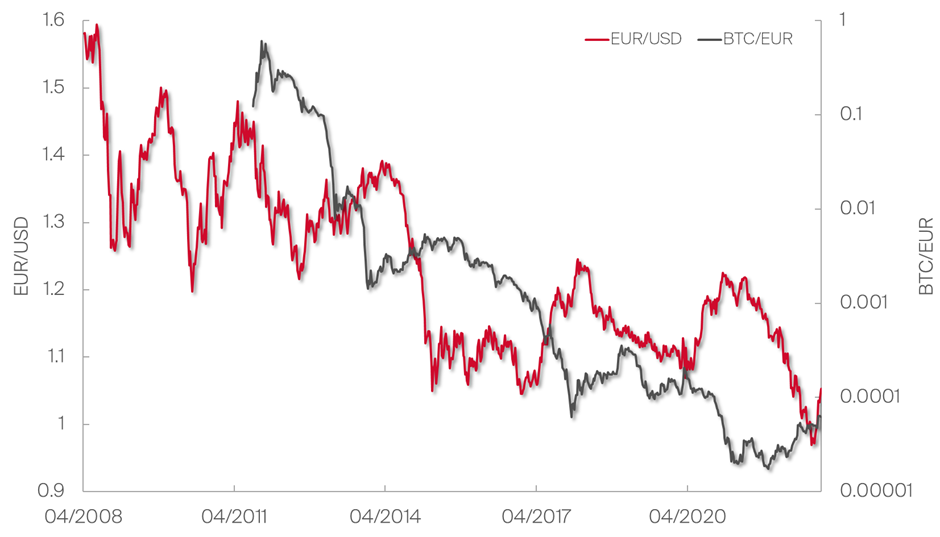 Total drawdown of EUR/USD pair since its high in the year 2008