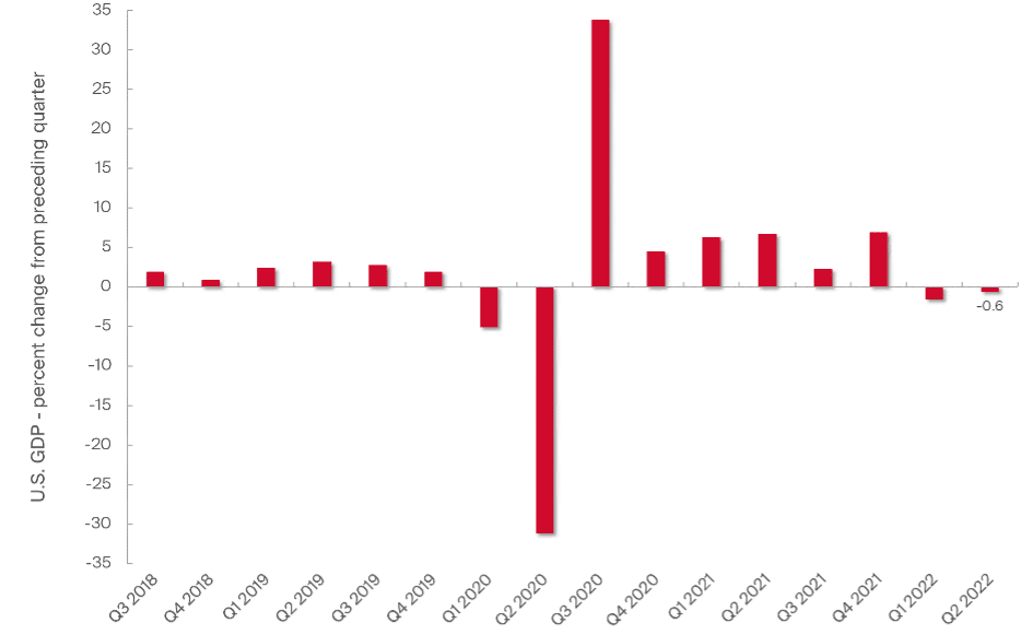 - The U.S. economy shrinks slightly in the second quarter, but the underlying numbers do not indicate a recession.