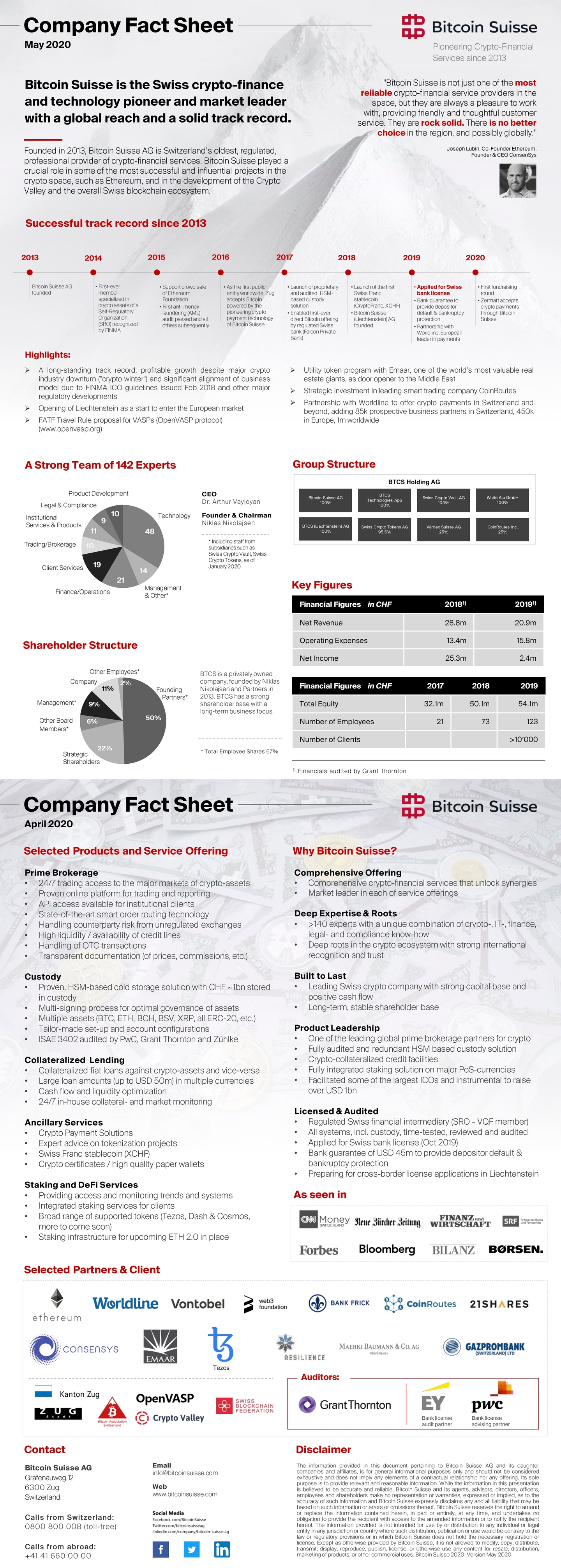 Bitcoin Suisse publishes 2019 Corporate Factsheet and Key Financials