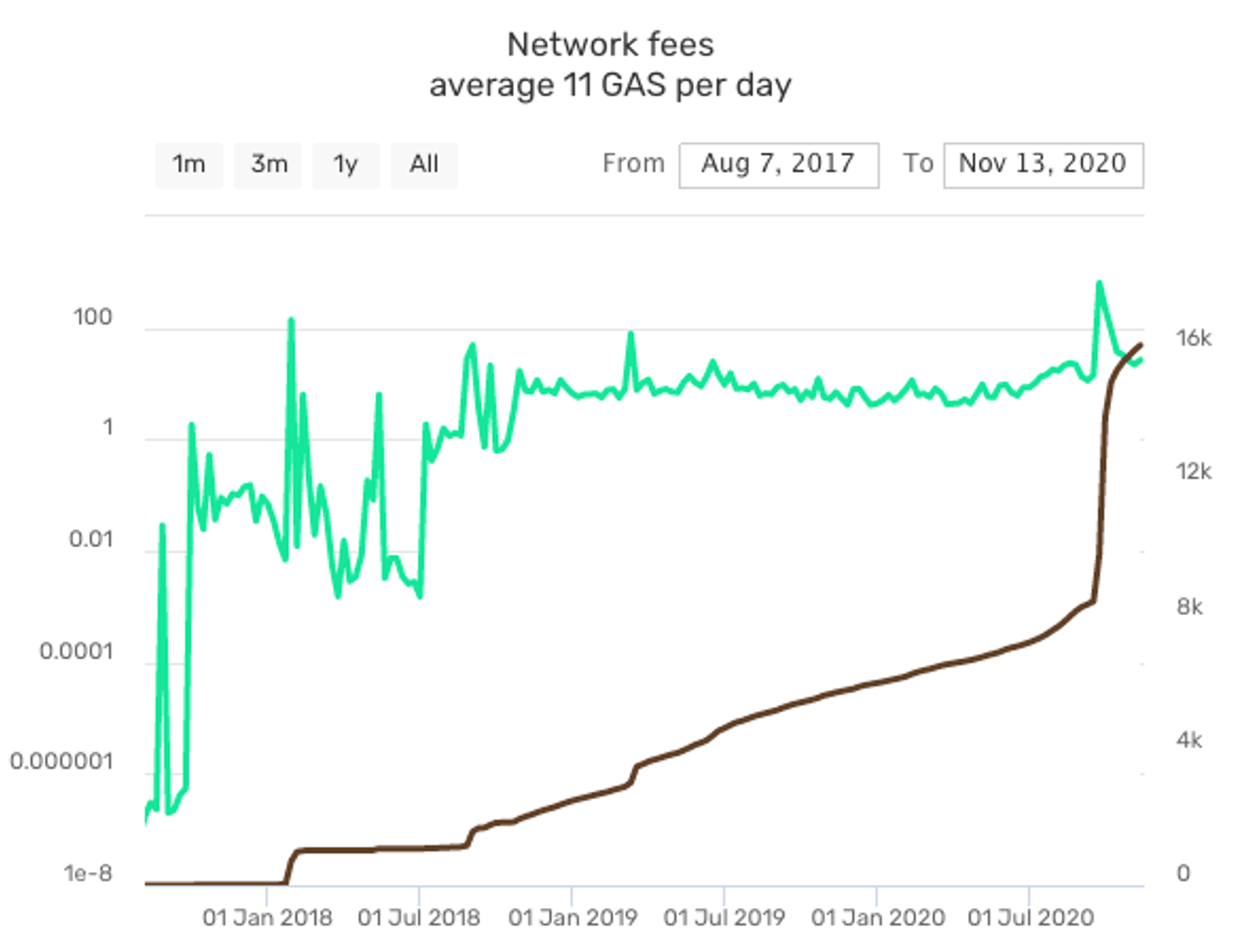 Another property of Neo that captured attention is the dual token scheme: NEO and GAS. While NEO gives the holders rights to manage and make decisions in the network (e.g., parameter changes), GAS functions as the utility token of the network (e.g., pay for transactions, smart contract deployments and invocations). 100 million NEO were minted at launch of the MainNet, while GAS is minted to NEO holders continuously in each new block to incentivize possession of NEO. The Neo network was one of the first having the notion of holding native assets to accumulate a utility token.