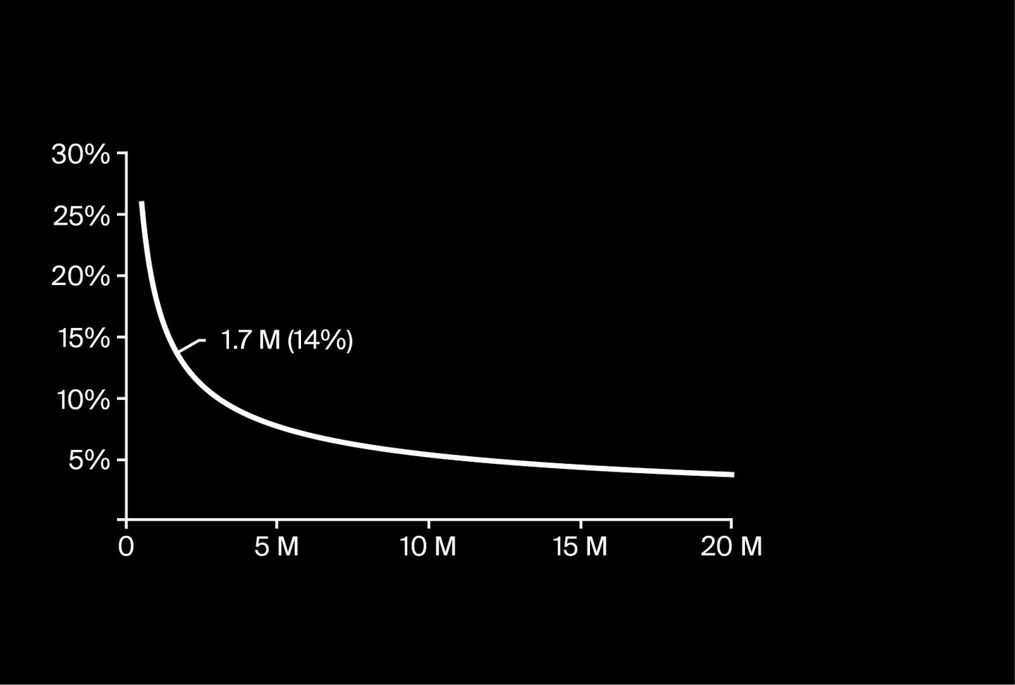 Projects looking to become a parachain of Polkadot will need to lock up DOTs, Polkadot’s native coin, for 6 to 24 months. This lock-up is in direct competition to the staking of DOTs, which currently yields around 13.5% annually (denominated in DOT). However, the economics of staking in Polkadot are designed in a way to encourage – as soon as parachains go live – a 50% staking rate of the total DOT supply, such that up to 50% of DOTs are available for parachain lock-ups.