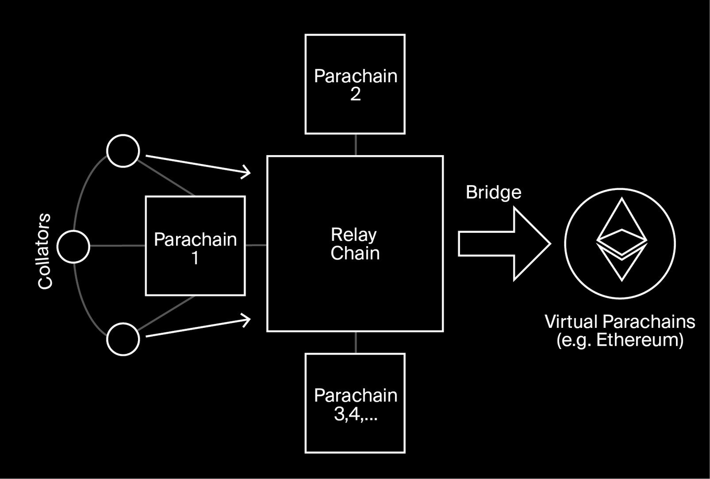 Polkadot’s architecture (and that of its “canary network” Kusama) includes a relay chain and parachains. Parachains are customizable blockchains for each use case, such as high transaction throughput or strong privacy. The relay chain enables pooled security guarantees: Instead of securing each parachain individually, this duty can be outsourced to the relay chain, which improves the capital efficiency and likely reduces the overall required security budget.