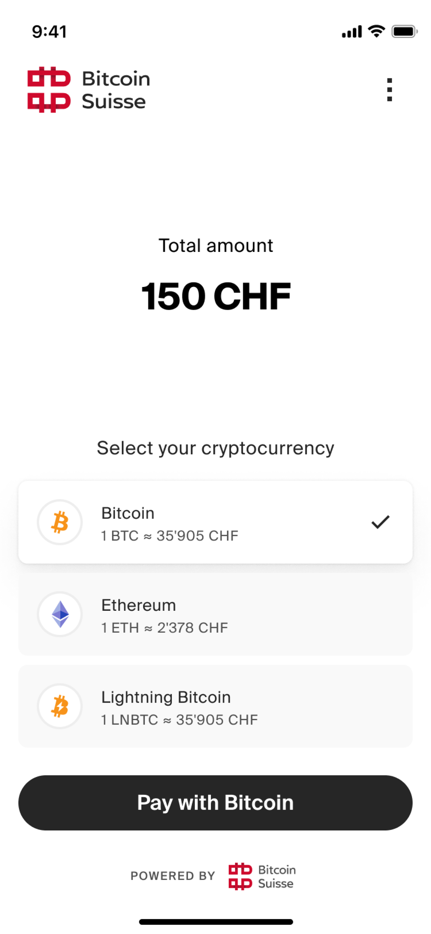 With Bitcoin Suisse Pay you are able to offer an additional contactless payment method to a ever-growing, high-spending customer base. With our easy-to-integrate solution, you will tap into next-gen customer groups on various sales channels in the twinkling of an eye.