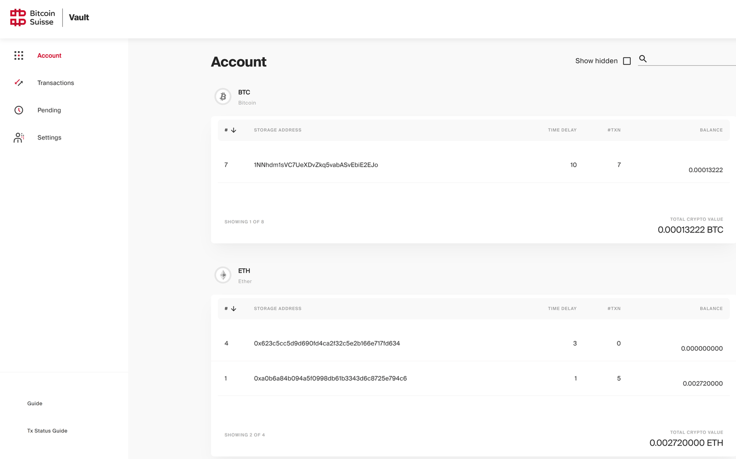 Für Vault-Kunden überzeugt diese Version besonders durch ein neues Design und eine verbesserte Benutzeroberfläche, welche dem Look & Feel der 24/7-Handelsplattform von Bitcoin Suisse – Bitcoin Suisse Online – sehr ähnlich ist.