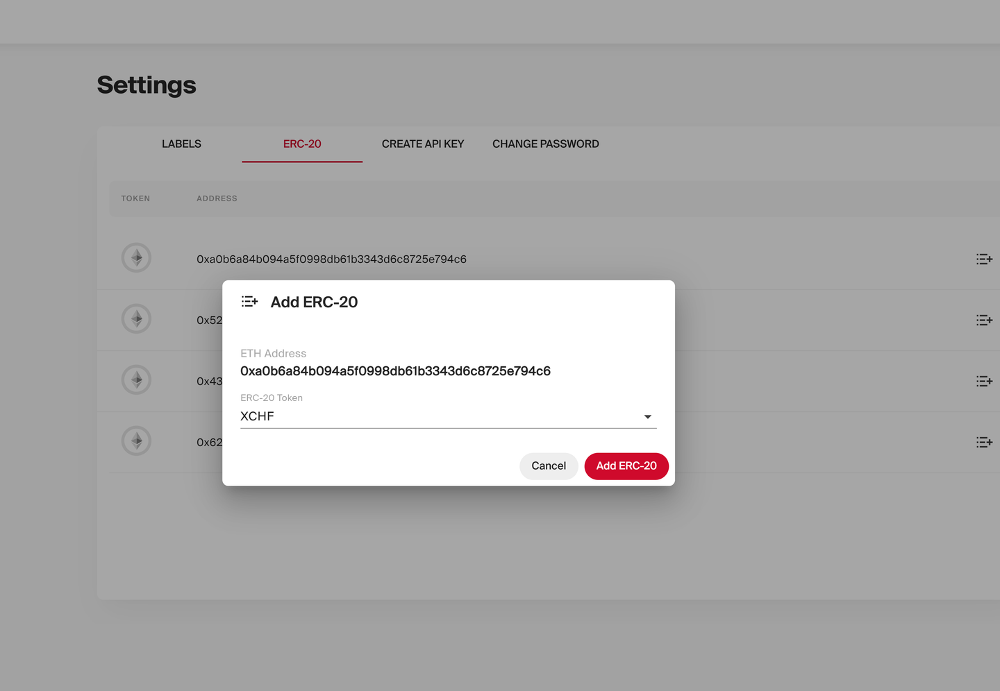 - 1. Vault-Kunden mit Partner- und Requestor-Rollen können Whitelisted ERC-20-Token auf ihren ETH-Adressen aktivieren.