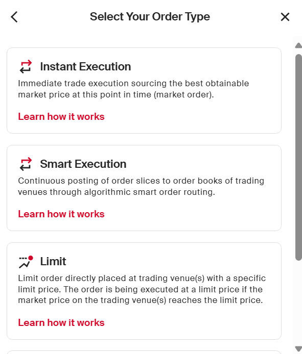 Support for nine order types, including instant execution, smart execution, TWAP, stop orders, limit orders and scheduled posts.
