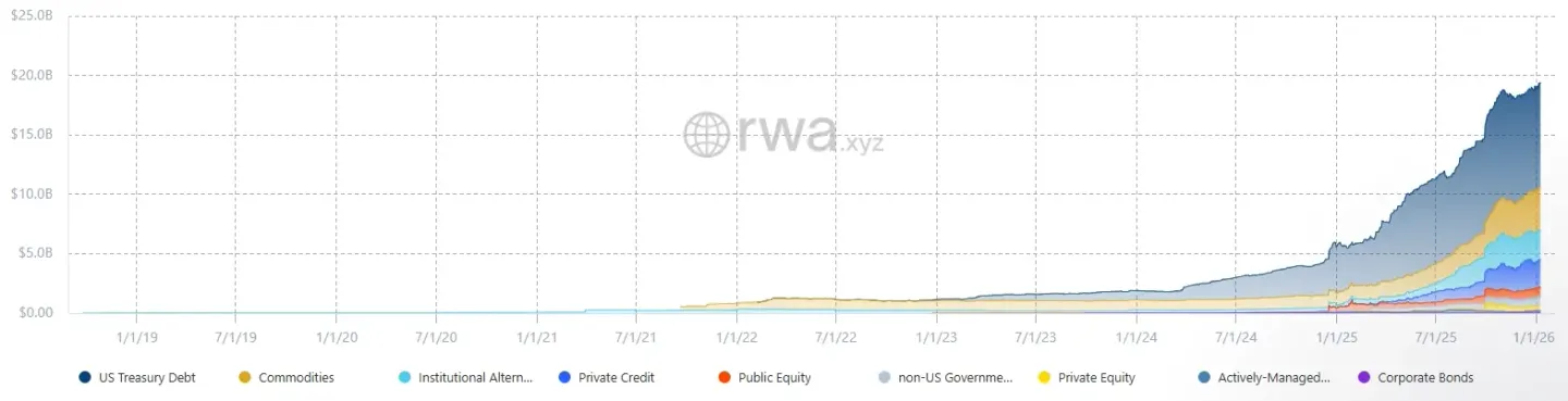 At the beginning of 2024, the total RWA value of all tokenized assets, according to rwa.xyz, was roughly $2B. Fast forward two years, and we are now sitting at $19B in tokenized assets, leaving the tokenization market with a clean 10x trade over the past two years. In 2025 alone, the total tokenization market increased from $5.6B to $19B within a year, showcasing one of crypto’s most promising and fastest-growing market segments at the moment.