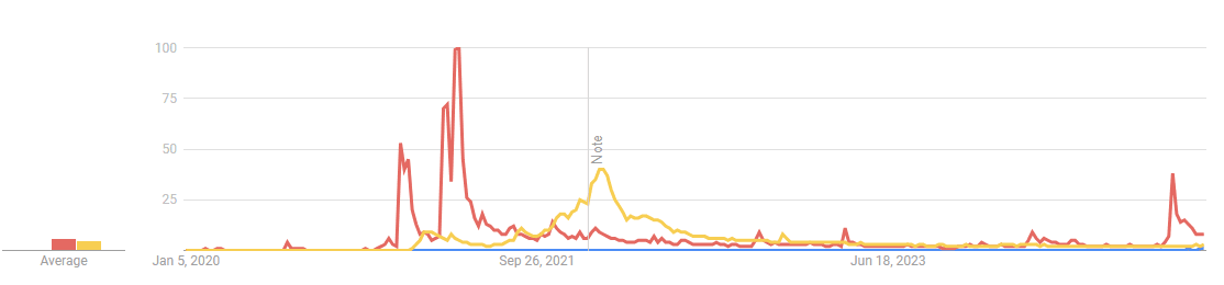 Even though everyone seems to be talking about them nowadays, when compared to the public attention that NFTs, for example, received during the last bull run, interest in AI Agents still has significant room to grow. As the graph below from Google Trends illustrates, the orange line indicates the interest over time for the term “Dogecoin,” the yellow line represents “NFT,” and the blue line shows “AI Agent.”