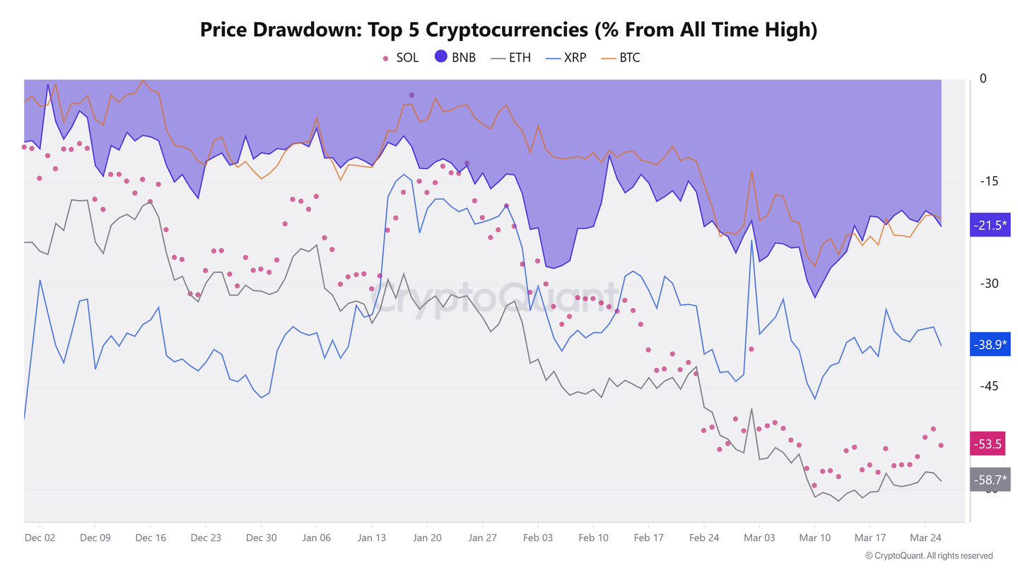 Chart of the Week: Price Drawdowns from ATH, BTC and BNB Holding up Well