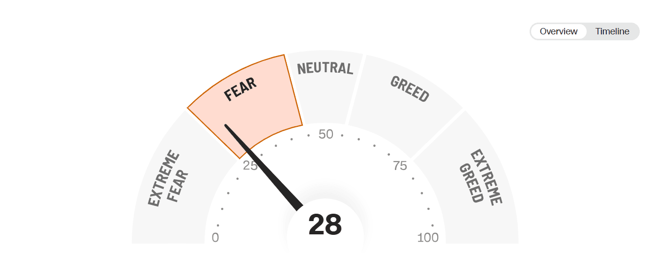The CNN Stock Market Fear & Greed Index is deep in fear territory at 28, while the crypto market is also in fear but slightly less so, at 44. Interestingly, sentiment among AAII members has improved slightly since last week. The percentage of members bullish on the stock market over the next six months rose from 21 percent to 27 percent, though the majority (52 percent) remain bearish.